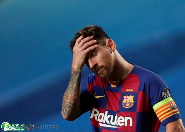 (巴薩2比8慘敗拜仁慕尼黑時,梅西露出失望神情。圖片來源:路透社)