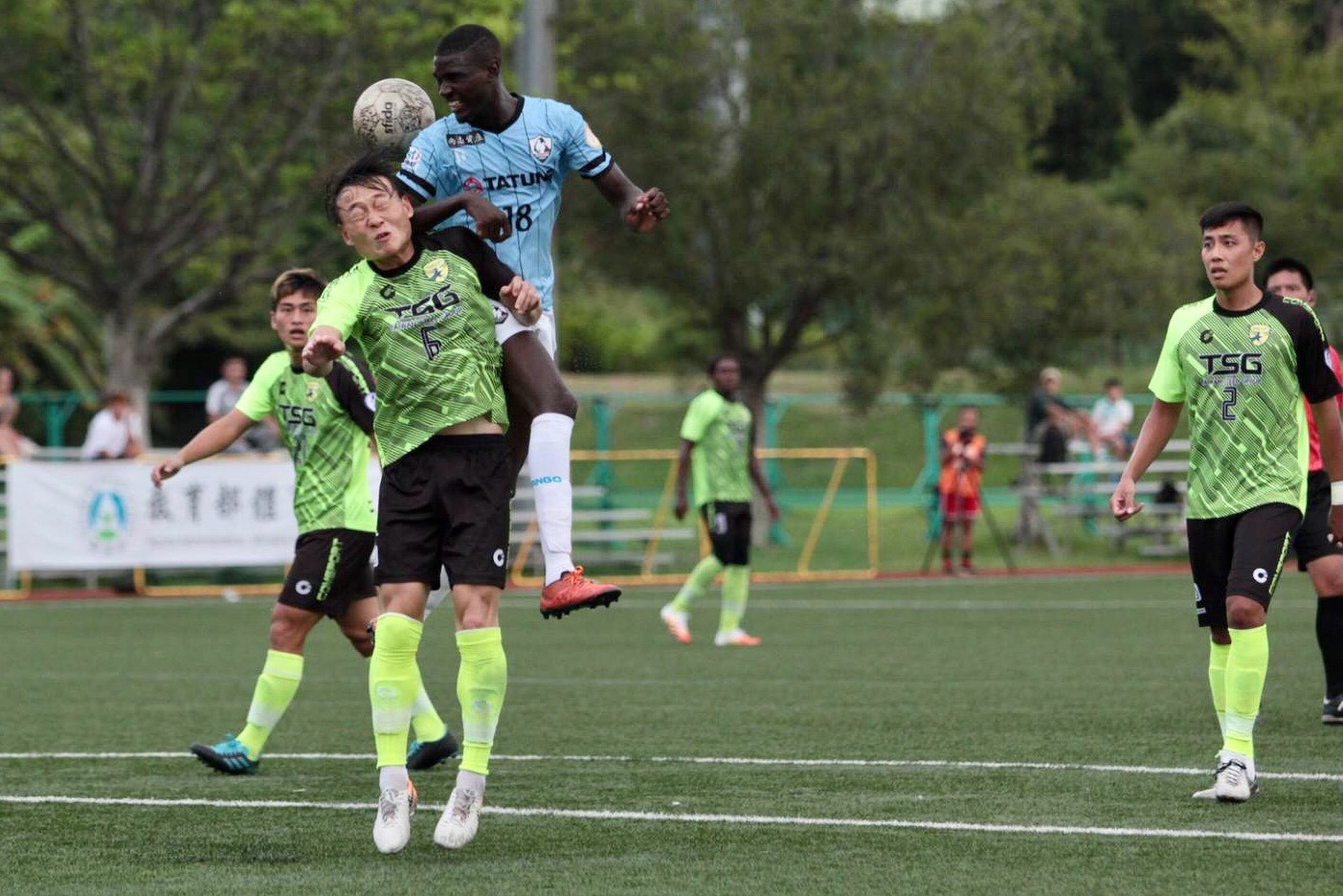(台灣鋼鐵蘇德財與北市大同韋嗣奮力爭頂。圖片來源:中華足協)