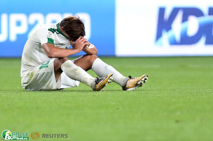 (伊拉克球員沮喪落敗。圖片來源:路透社)