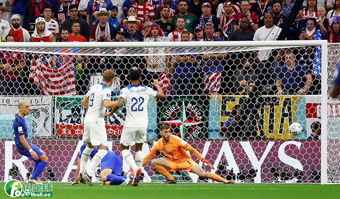 世界盃B組英格蘭對美國的比賽,普利西奇射門中柱,英格蘭0比0踢平美國。